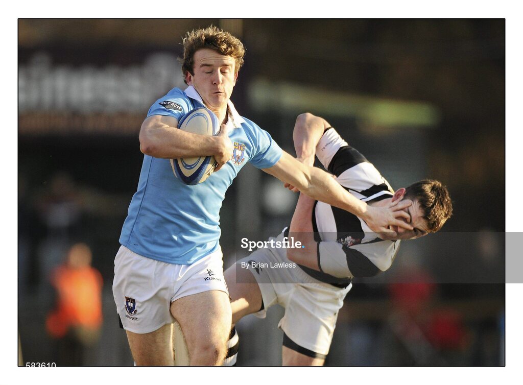 30 January 2011; Mark Corballis, St Michael's College, in action against Cillian O'Sullivan, Belvedere College. Powerade Leinster Schools Rugby Senior Cup, First Round, Belvedere College v St Michael's College, Donnybrook Stadium, Donnybrook, Dublin. Picture credit: Brian Lawless / SPORTSFILE