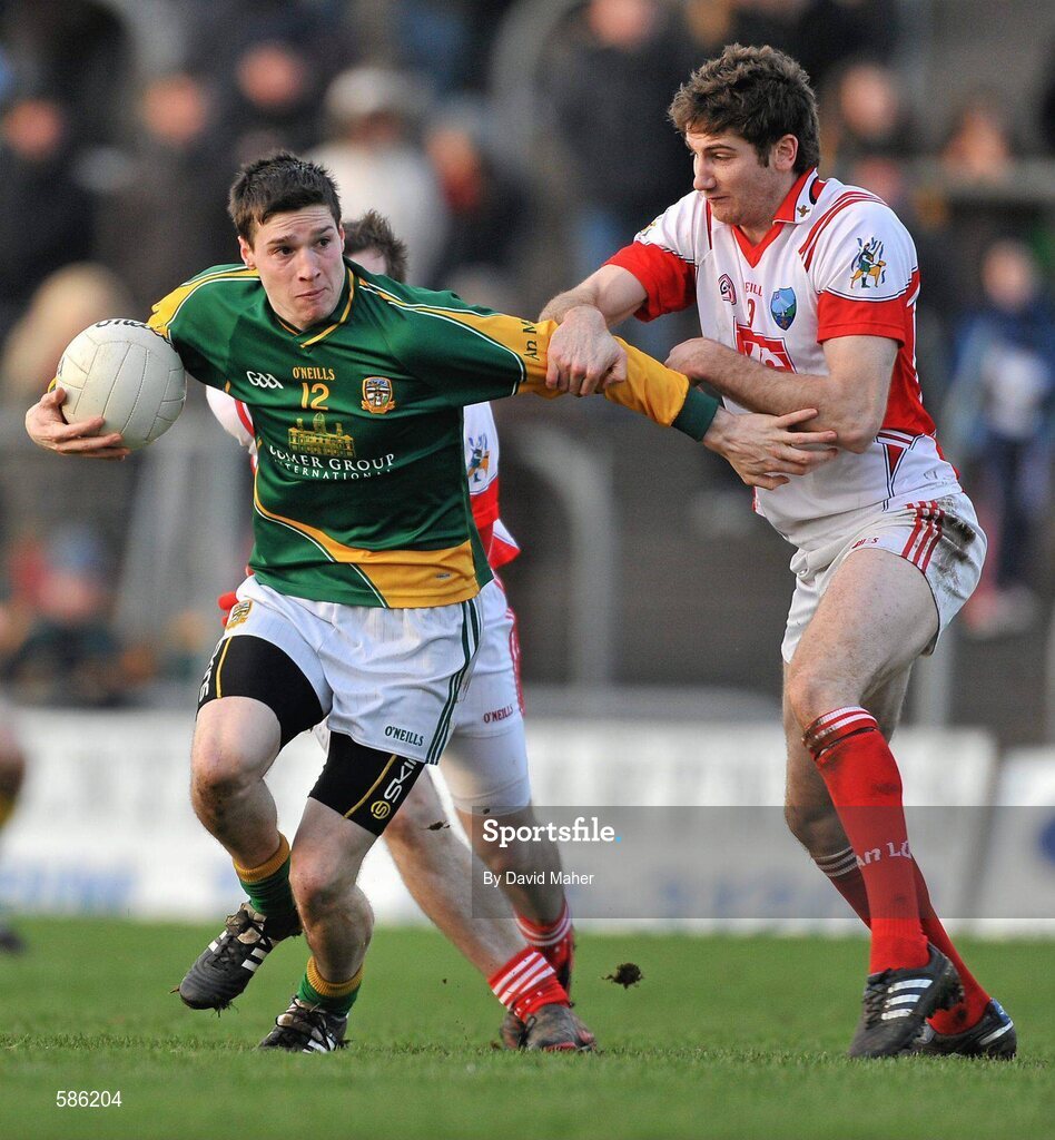 15 January 2012; Donnacha Tobin, Meath, in action against Brian Donnelly, Louth. Bord na Mona O'Byrne Cup, Quarter-Final, Meath v Louth, Pairc Tailteann, Navan, Co. Meath. Picture credit: David Maher / SPORTSFILE