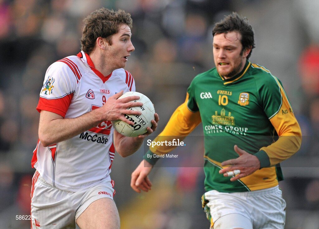 15 January 2012; Brian Donnelly, Louth, in action against Brian Meade, Meath. Bord na Mona O'Byrne Cup, Quarter-Final, Meath v Louth, Pairc Tailteann, Navan, Co. Meath. Picture credit: David Maher / SPORTSFILE