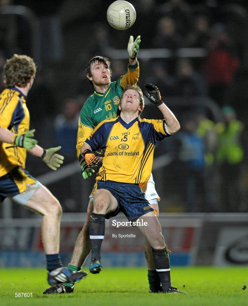 21 January 2012; Brian Meade, Meath, in action against David Kelly, Dublin City University. Bord na Mona O'Byrne Cup, Semi-Final, Meath v Dublin City University, Pairc Tailteann, Navan, Co. Meath. Photo by Sportsfile