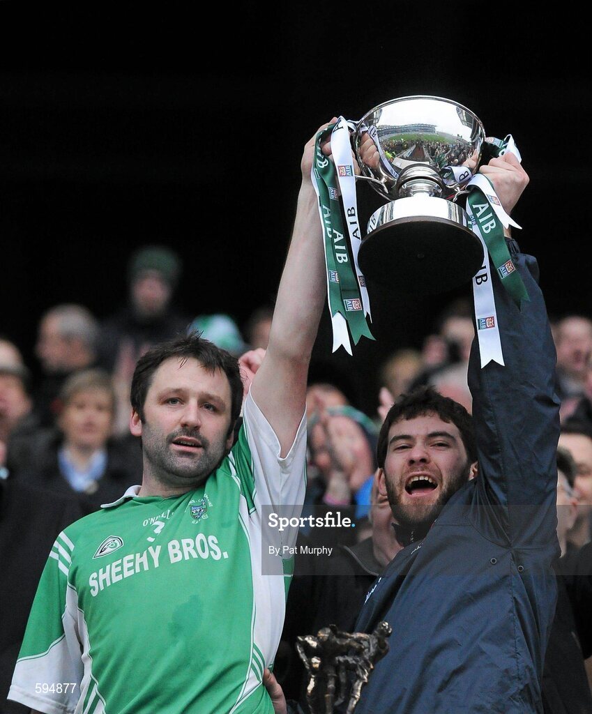 12 February 2012; Milltown - Castlemaine co-captains Damian Murphy, left, and Ciaran Kelleher lift the cup. AIB GAA Football All-Ireland Intermediate Club Championship Final, Davitts, Mayo v Milltown - Castlemaine, Co. Kerry, Croke Park, Dublin. Picture credit: Pat Murphy / SPORTSFILE