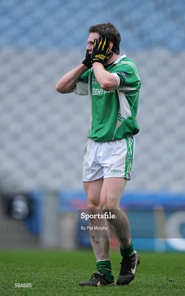 12 February 2012; Mike Burke, Milltown - Castlemaine, shows his excitement during the final minute of the game. AIB GAA Football All-Ireland Intermediate Club Championship Final, Davitts, Mayo v Milltown - Castlemaine, Co. Kerry, Croke Park, Dublin. Picture credit: Pat Murphy / SPORTSFILE