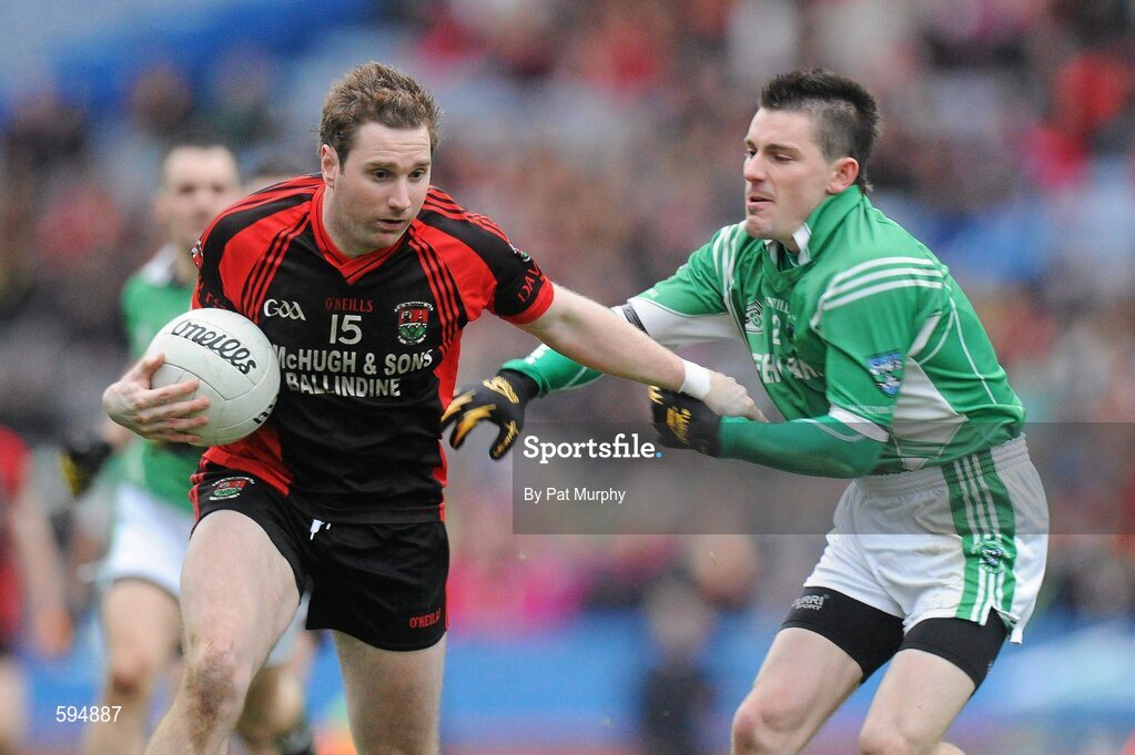 12 February 2012; Michael Conroy, Davitts, in action against Kevin McKenna, Milltown - Castlemaine. AIB GAA Football All-Ireland Intermediate Club Championship Final, Davitts, Mayo v Milltown - Castlemaine, Co. Kerry, Croke Park, Dublin. Picture credit: Pat Murphy / SPORTSFILE