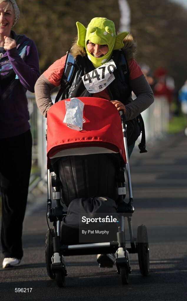18 February 2012; Jane Boyle, from Clonmel, Co. Tipperary, pushes a pram carrying her son Alwin during the Operation Transformation Race 2012. Phoenix Park, Dublin. Picture credit: Pat Murphy / SPORTSFILE
