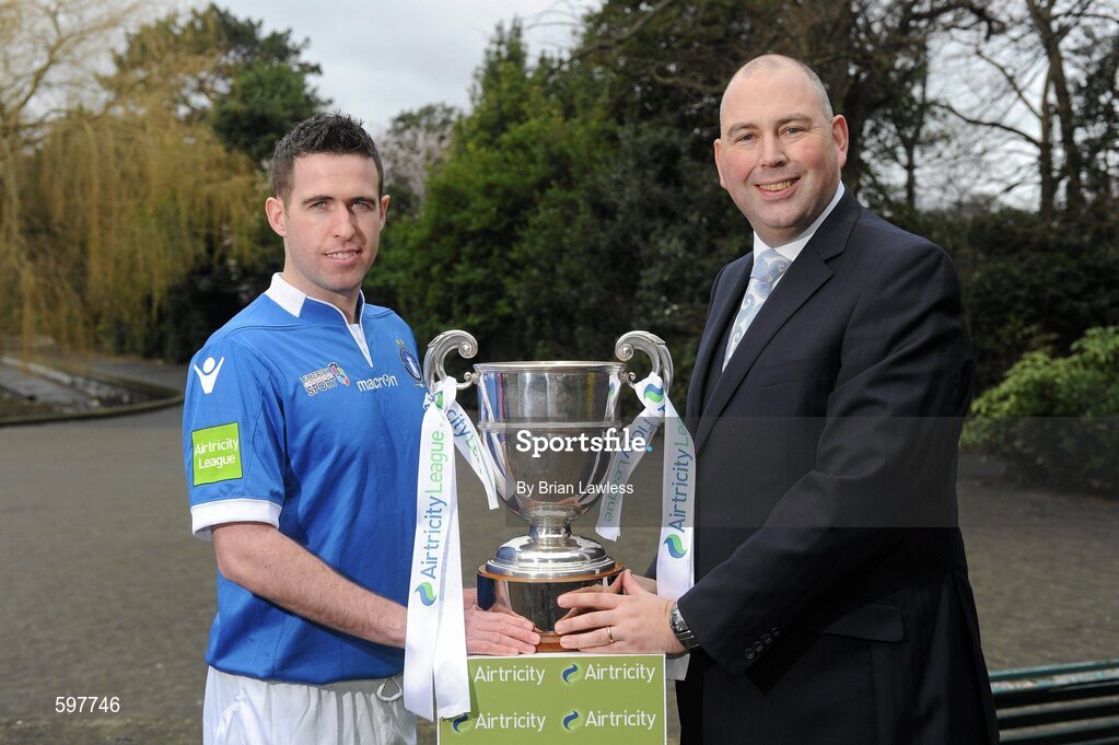 24 February 2012; In attendance at the Airtricity League 2012 launch is Stephen Bradley, Limerick FC, left, with Jason Cooke, Head of Communications with Airtricity. Airtricity League 2012 Launch, The Herbert Park Hotel, Ballsbridge, Dublin. Picture credit: Brian Lawless / SPORTSFILE