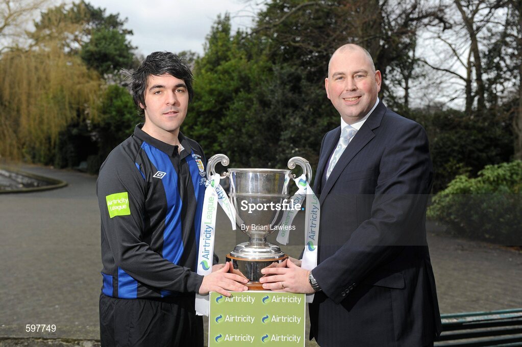 24 February 2012; In attendance at the Airtricity League 2012 launch is Scott Gaynor, Athlone Town, left, with Jason Cooke, Head of Communications with Airtricity. Airtricity League 2012 Launch, The Herbert Park Hotel, Ballsbridge, Dublin. Picture credit: Brian Lawless / SPORTSFILE