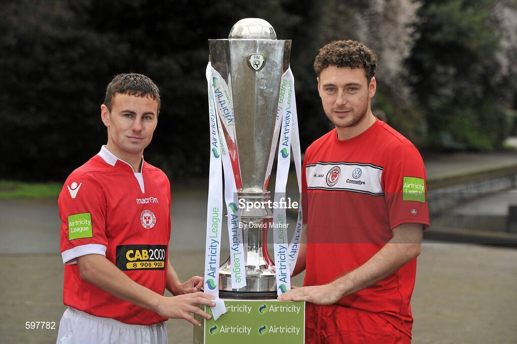 27 February 2012; In attendance at the Airtricity League 2012 launch is David Cassidy, left, Shelbourne, and Mark Quigley, Sligo Rovers, both teams will face each other during the opening weekend of the Airtricity League Premier Division. Airtricity League 2012 Launch, The Herbert Park Hotel, Ballsbridge, Dublin. Picture credit: David Maher / SPORTSFILE