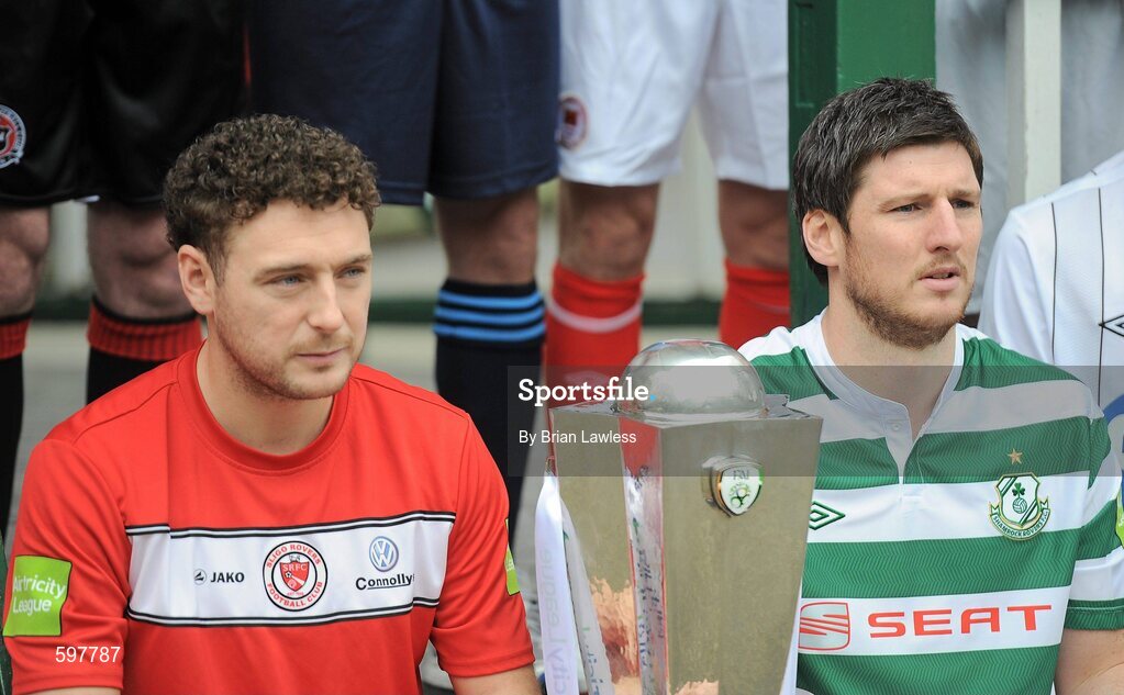 24 February 2012; In attendance at the Airtricity League 2012 launch are Ken Oman, Shamrock Rovers, and Mark Quigley, Sligo Rovers, left. Airtricity League 2012 Launch, The Herbert Park Hotel, Ballsbridge, Dublin. Picture credit: Brian Lawless / SPORTSFILE