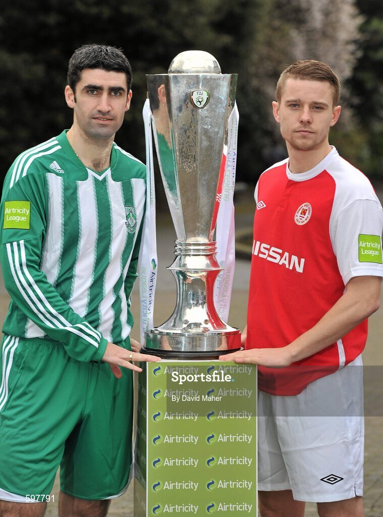 27 February 2012; In attendance at the Airtricity League 2012 launch is Danny O'Connor, left, Bray Wanderers, and Ger O'Brien, St.Patrick's Athletic, both teams will face each other during the opening weekend of the Airtricity League Premier Division. Airtricity League 2012 Launch, The Herbert Park Hotel, Ballsbridge, Dublin. Picture credit: David Maher / SPORTSFILE