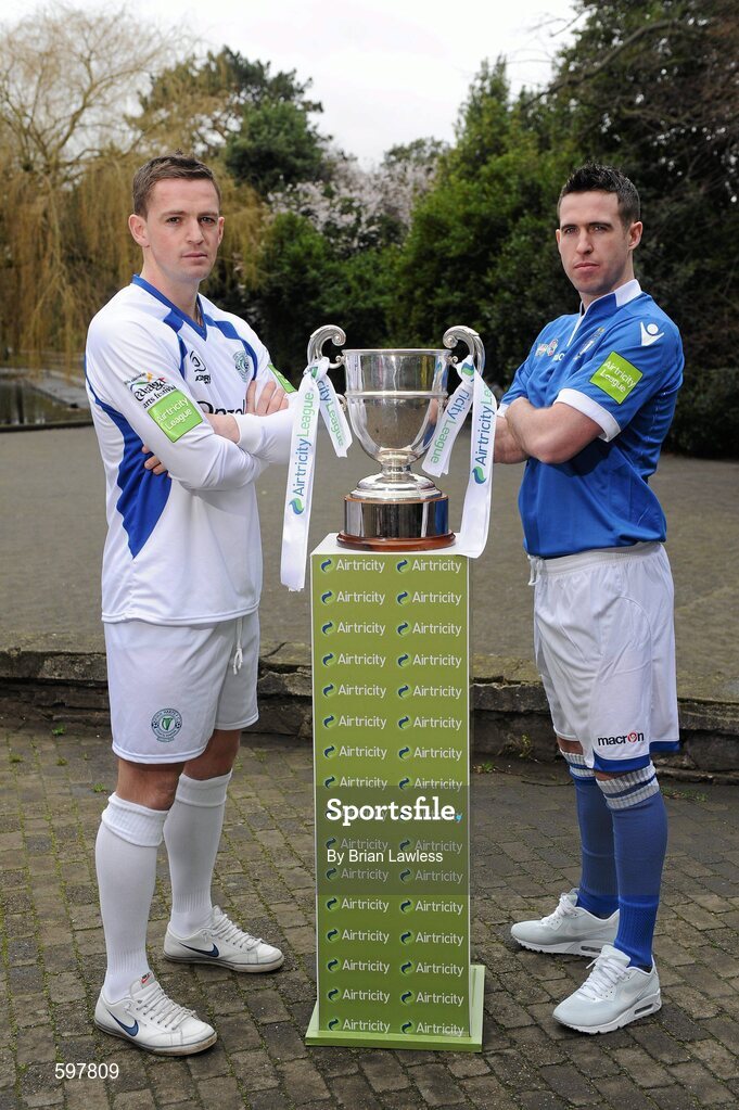 27 February 2012; In attendance at the Airtricity League 2012 launch are Kevin McHugh, Finn Harps, left, and Stephen Bradley, Limerick FC, both teams will face each other during the opening weekend of the Airtricity League First Division. Airtricity League 2012 Launch, The Herbert Park Hotel, Ballsbridge, Dublin. Picture credit: Brian Lawless / SPORTSFILE