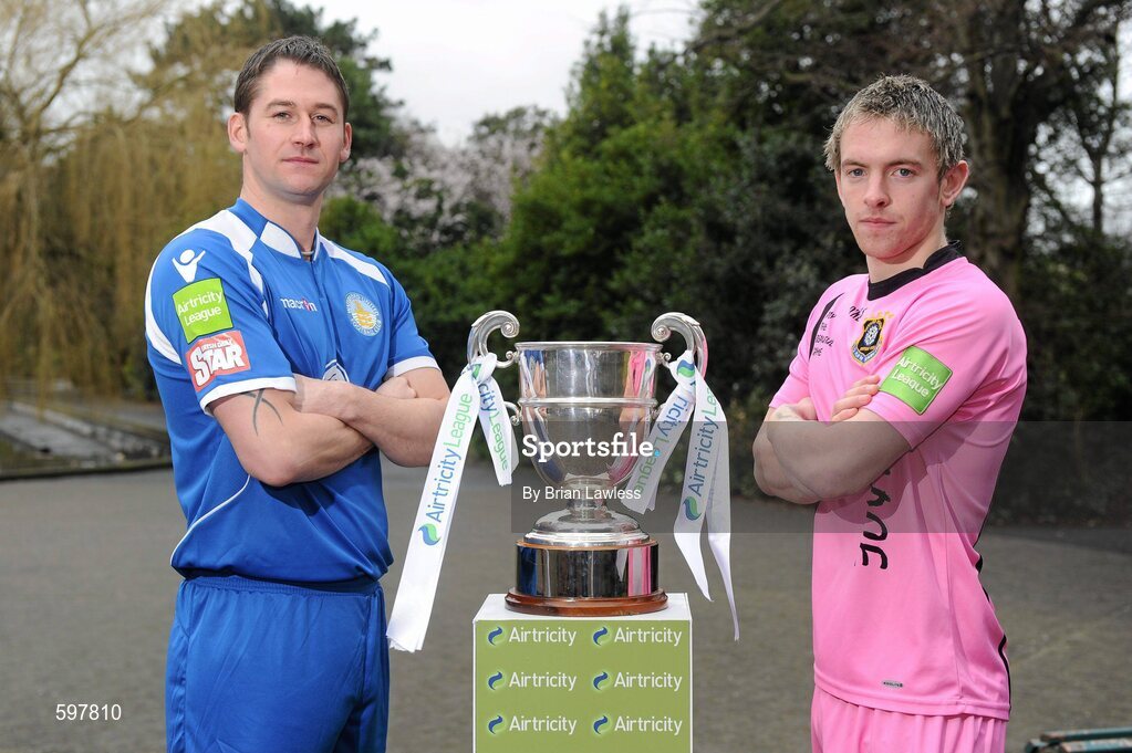 27 February 2012; In attendance at the Airtricity League 2012 launch are David Breen, Waterford United, left, and Danny Furlong, Wexford Youths, both teams will face each other during the opening weekend of the Airtricity League First Division. Airtricity League 2012 Launch, The Herbert Park Hotel, Ballsbridge, Dublin. Picture credit: Brian Lawless / SPORTSFILE