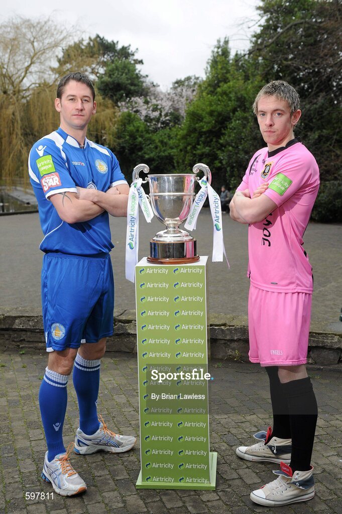 27 February 2012; In attendance at the Airtricity League 2012 launch are David Breen, Waterford United, left, and Danny Furlong, Wexford Youths, both teams will face each other during the opening weekend of the Airtricity League First Division. Airtricity League 2012 Launch, The Herbert Park Hotel, Ballsbridge, Dublin. Picture credit: Brian Lawless / SPORTSFILE