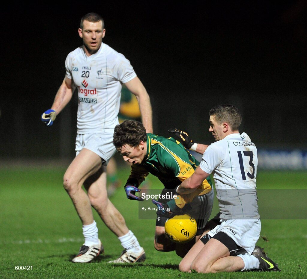 3 March 2012; Chris O'Connor, Meath, in action against Ronan Sweeney, left, and Eamonn Callaghan, Kildare. Allianz Football League, Division 2, Round 3, Meath v Kildare, Páirc Táilteann, Navan, Co. Meath. Picture credit: Barry Cregg / SPORTSFILE