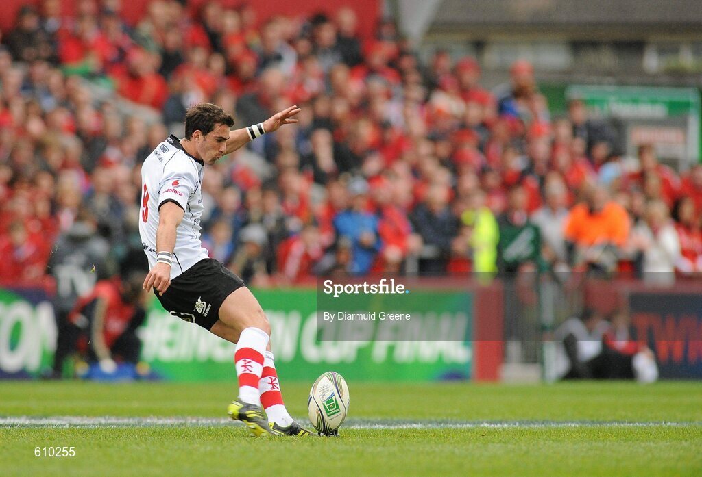8 April 2012; Ruan Pienaar, Ulster, kicks a penalty. Heineken Cup Quarter-Final, Munster v Ulster, Thomond Park, Limerick. Picture credit: Diarmuid Greene / SPORTSFILE