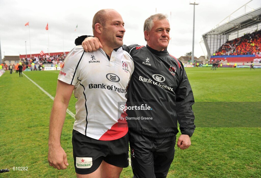 8 April 2012; Ulster's Rory Best with head coach Brian McLaughlin after victory over Munster. Heineken Cup Quarter-Final, Munster v Ulster, Thomond Park, Limerick. Picture credit: Diarmuid Greene / SPORTSFILE