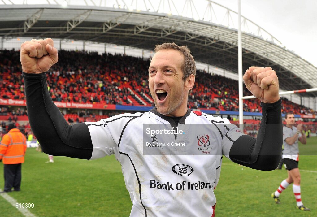 8 April 2012; Ulster's Stefan Terblanche celebrates after victory over Munster. Heineken Cup Quarter-Final, Munster v Ulster, Thomond Park, Limerick. Picture credit: Diarmuid Greene / SPORTSFILE