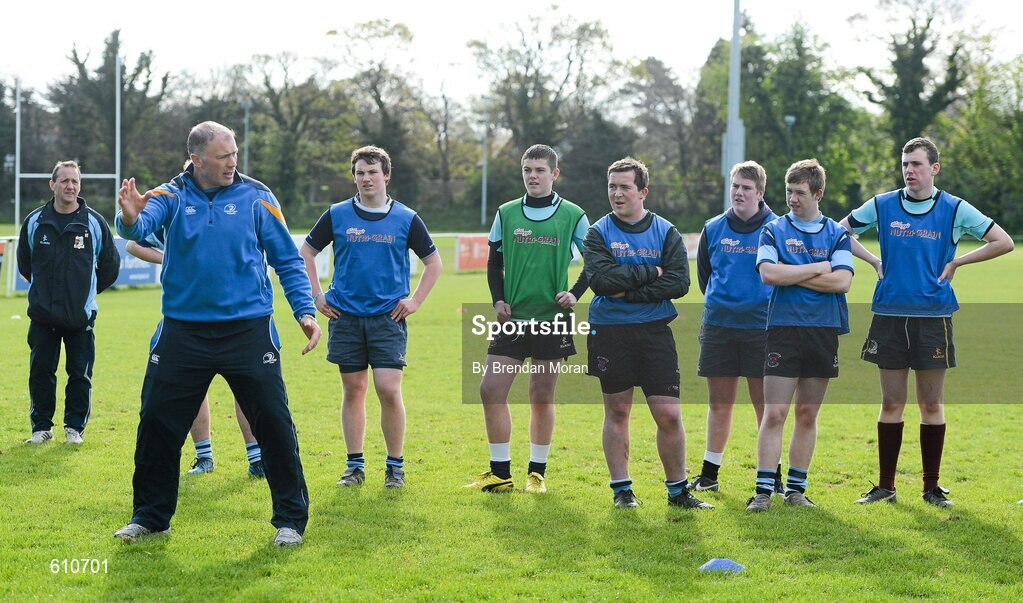 10 April 2012; Profesional coach Colin McEntee with players from Navan RFC, Co. Meath, during a Kellogg’s Nutri-Grain Professional Rugby Clinic. Navan Rugby Club recently won the opportunity to train with Kellogg’s Nutri-Grain ambassador Rob Kearney and professional IRFU coaches. Kellogg’s Nutri-Grain Professional Rugby Clinic, Old Belvedere RFC, Anglesea Road, Donnybrook, Dublin. Picture credit: Brendan Moran / SPORTSFILE