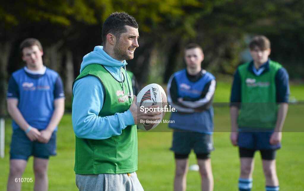 10 April 2012; Leinster and Ireland full-back Rob Kearney with players from Navan RFC, Co. Meath, during a Kellogg’s Nutri-Grain Professional Rugby Clinic. Navan Rugby Club recently won the opportunity to train with Kellogg’s Nutri-Grain ambassador Rob Kearney and professional IRFU coaches. Kellogg’s Nutri-Grain Professional Rugby Clinic, Old Belvedere RFC, Anglesea Road, Donnybrook, Dublin. Picture credit: Brendan Moran / SPORTSFILE