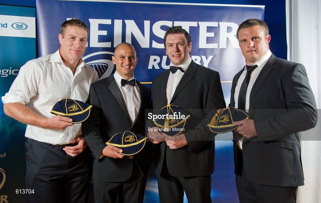 21 April 2012; Leinster players, from left, Brad Thorn, Mat Berquist, Simon Shawe and Nathan White who were all presented with Leinster caps but will be leaving at the end of the season. Leinster Rugby Awards Ball, Mansion House, Dawson St, Dublin. Picture credit: Brendan Moran / SPORTSFILE