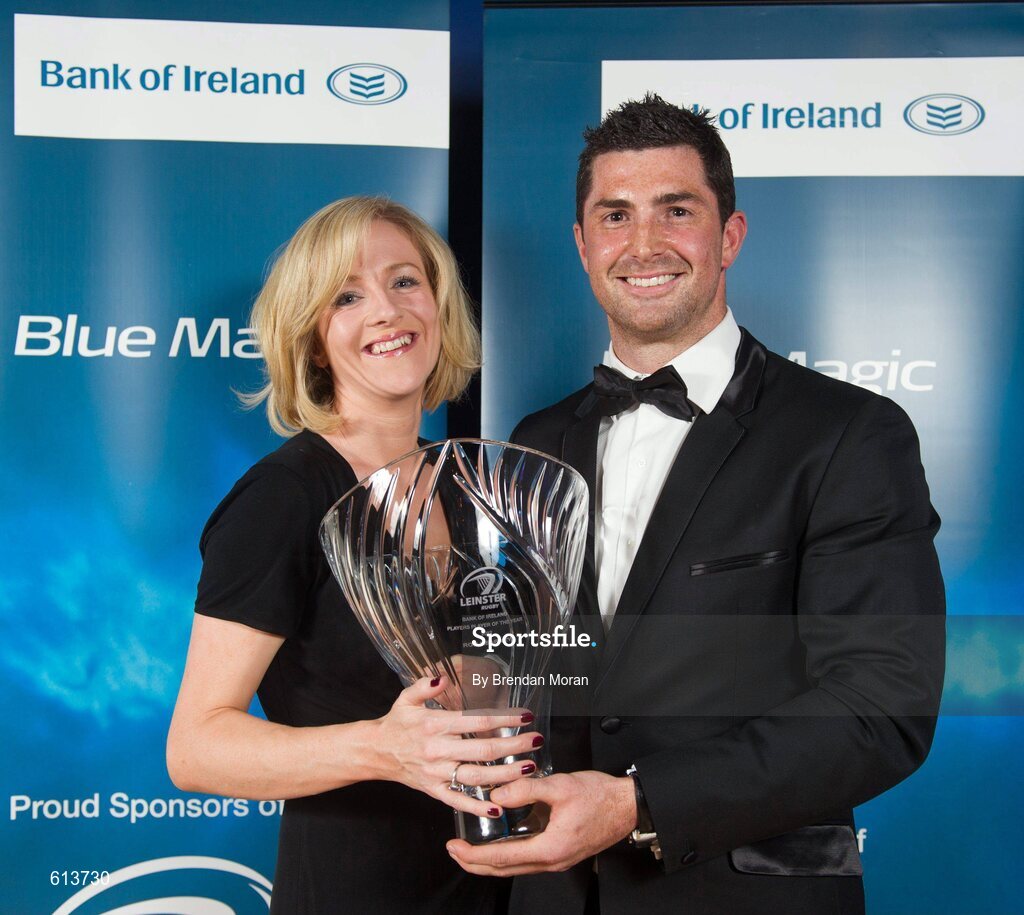 21 April 2012; Leinster's Rob Kearney is presented with the Bank of Ireland Players' Player of the Year award by Laura Lynch, Head of Sponsorship, Bank of Ireland. Leinster Rugby Awards Ball, Mansion House, Dawson St, Dublin. Picture credit: Brendan Moran / SPORTSFILE