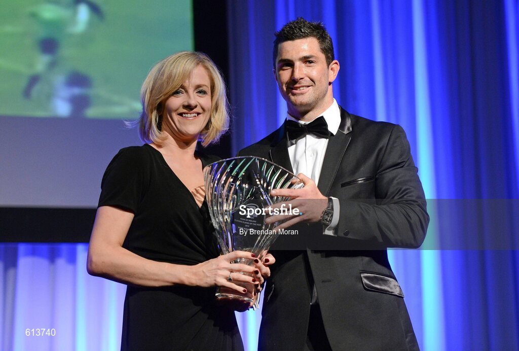21 April 2012; Leinster's Rob Kearney is presented with the Bank of Ireland Players' Player of the Year award by Laura Lynch, Head of Sponsorship, Bank of Ireland. Leinster Rugby Awards Ball, Mansion House, Dawson St, Dublin. Picture credit: Brendan Moran / SPORTSFILE