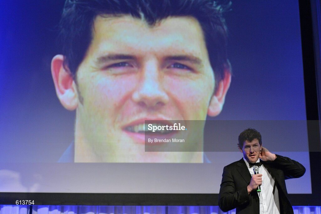 21 April 2012; Leinster's Shane Horgan speaking on the occasion of his retirement from the game this season. Leinster Rugby Awards Ball, Mansion House, Dawson St, Dublin. Picture credit: Brendan Moran / SPORTSFILE