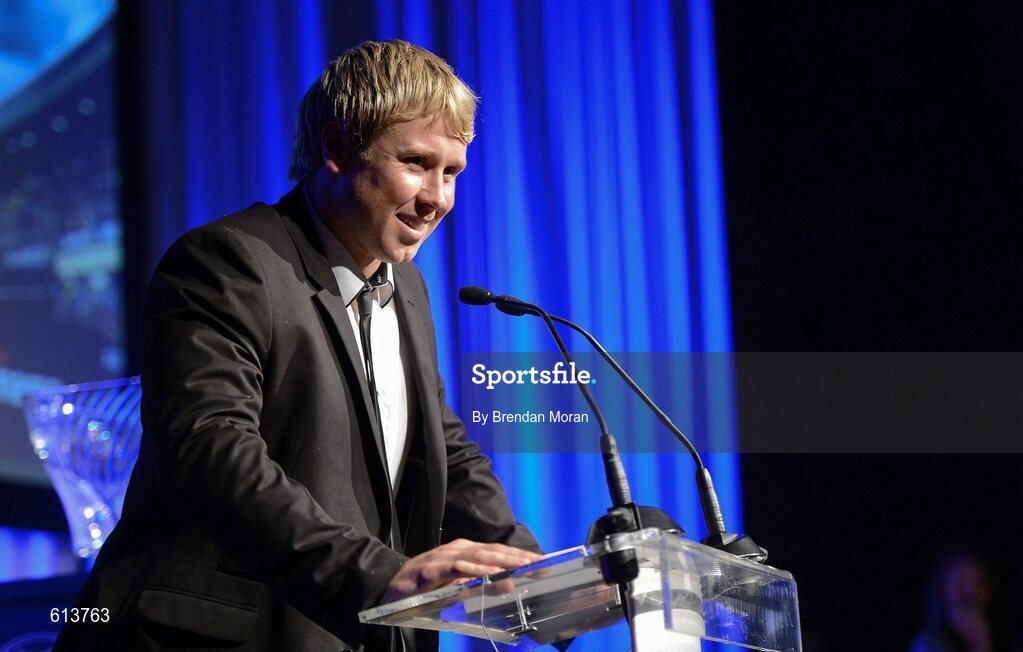 21 April 2012; Leinster's Fionn Carr speaking at the Leinster Rugby Awards Ball. Leinster Rugby Awards Ball, Mansion House, Dawson St, Dublin. Picture credit: Brendan Moran / SPORTSFILE
