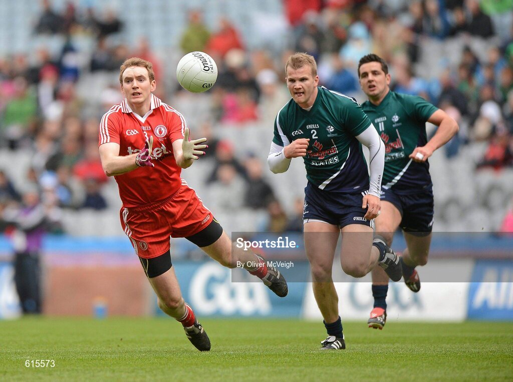 29 April 2012; Aidan Cassidy, Tyrone, in action against Peter Kelly, Kildare. Allianz Football League, Division 2 Final, Tyrone v Kildare, Croke Park, Dublin. Picture credit: Oliver McVeigh / SPORTSFILE