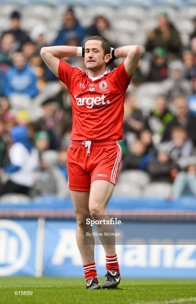 29 April 2012; A dejected Stephen O'Neill, Tyrone, at the final whistle. Allianz Football League, Division 2 Final, Tyrone v Kildare, Croke Park, Dublin. Picture credit: Oliver McVeigh / SPORTSFILE
