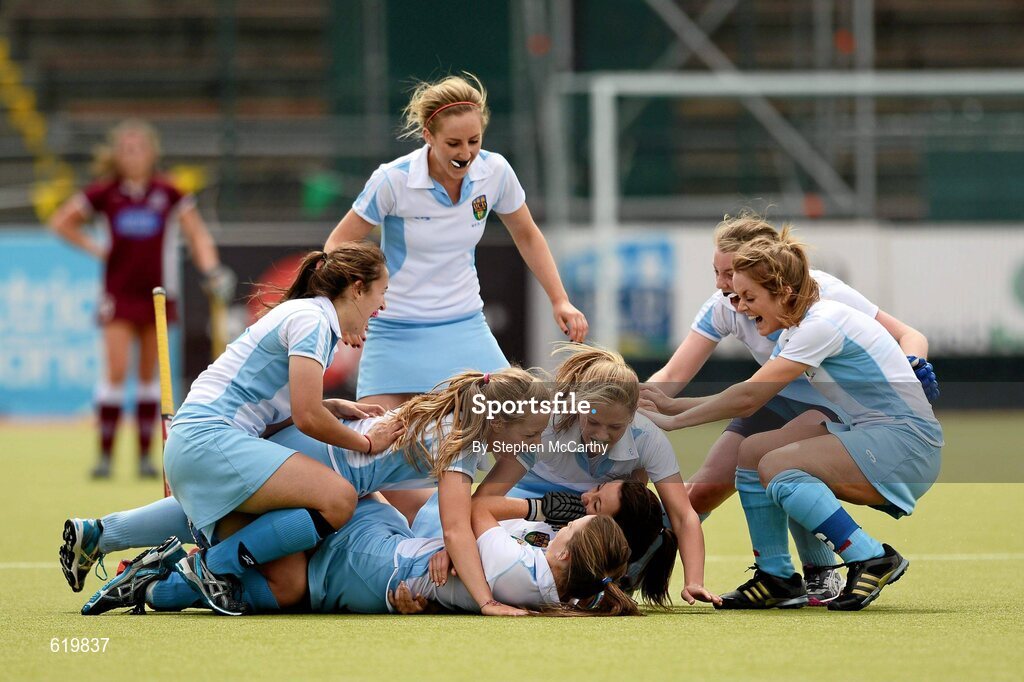 13 May 2012; UCD players celebrate at the final whistle. Electric Ireland Women's Irish Senior Cup Final, UCD v Loreto, National Hockey Stadium, UCD, Belfield, Dublin. Picture credit: Stephen McCarthy / SPORTSFILE