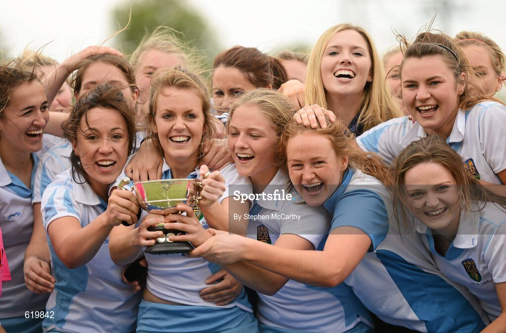 13 May 2012; UCD captain Laura Wilson and team-mates celebrate with the cup. Electric Ireland Women's Irish Senior Cup Final, UCD v Loreto, National Hockey Stadium, UCD, Belfield, Dublin. Picture credit: Stephen McCarthy / SPORTSFILE