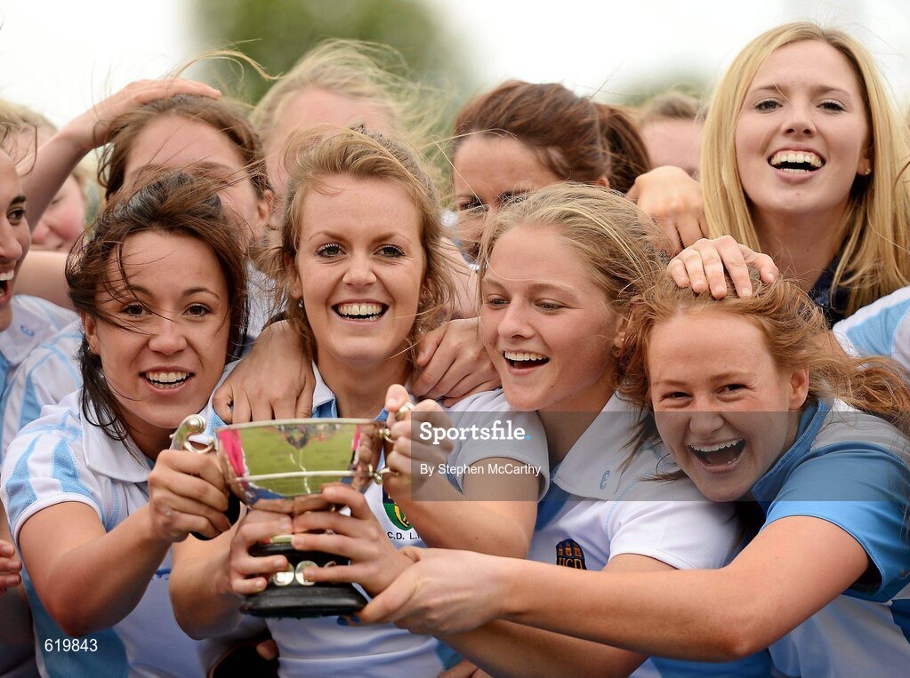 13 May 2012; UCD captain Laura Wilson and team-mates celebrate with the cup. Electric Ireland Women's Irish Senior Cup Final, UCD v Loreto, National Hockey Stadium, UCD, Belfield, Dublin. Picture credit: Stephen McCarthy / SPORTSFILE