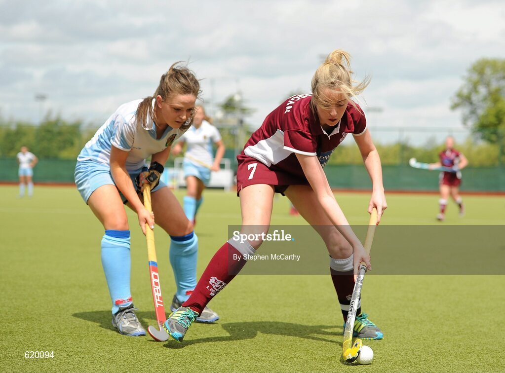 13 May 2012; Nikki Keegan, Loreto, in action against Sarah Greene, UCD. Electric Ireland Women's Irish Senior Cup Final, UCD v Loreto, National Hockey Stadium, UCD, Belfield, Dublin. Picture credit: Stephen McCarthy / SPORTSFILE