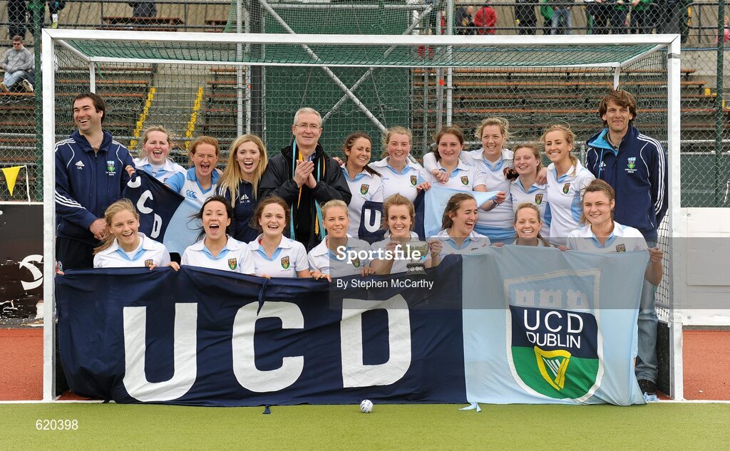 13 May 2012; UCD captain Laura Wilson and team-mates celebrate with the cup. Electric Ireland Women's Irish Senior Cup Final, UCD v Loreto, National Hockey Stadium, UCD, Belfield, Dublin. Picture credit: Stephen McCarthy / SPORTSFILE