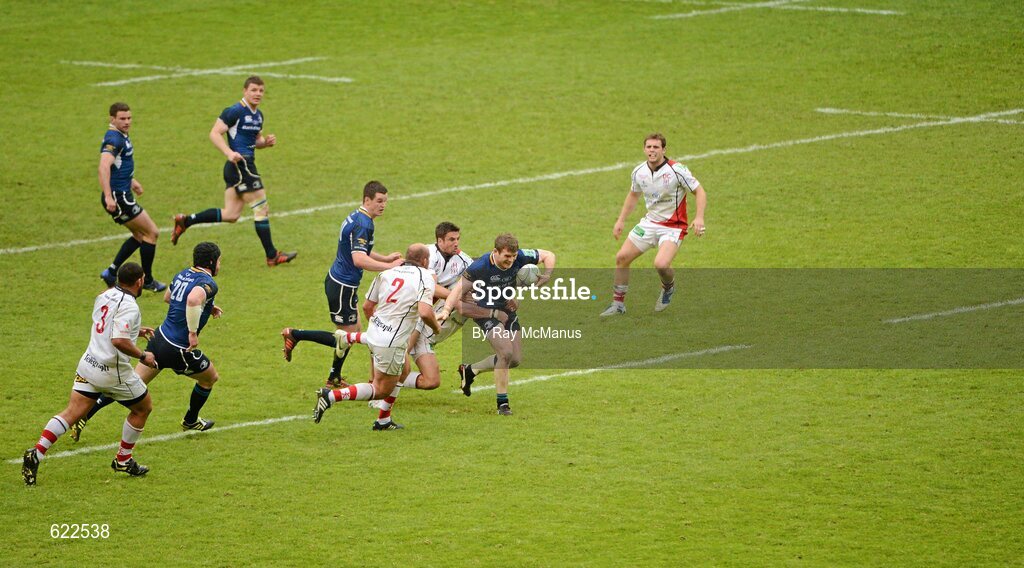 19 May 2012; Leinster's Gordon D'Arcy leads another attack on the Ulster lines. Heineken Cup Final, Leinster v Ulster, Twickenham Stadium, Twickenham, England. Picture credit: Ray McManus / SPORTSFILE