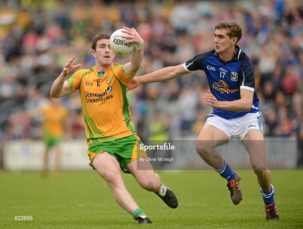20 May 2012; Patrick McBrearty, Donegal, in action against Padraig Faulkner, Cavan. Ulster GAA Football Senior Championship Preliminary Round, Cavan v Donegal, Kingspan Breffni Park, Cavan. Picture credit: Oliver McVeigh / SPORTSFILE