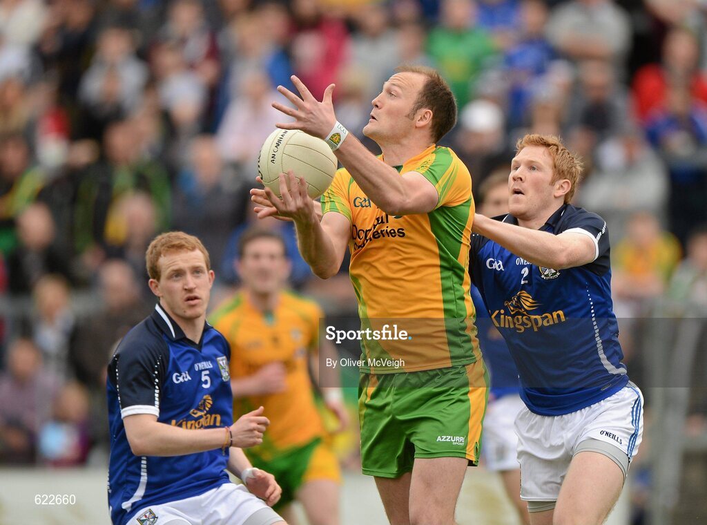 20 May 2012; Colm McFadden, Donegal, in action against Padraic O'Reilly, Cavan. Ulster GAA Football Senior Championship Preliminary Round, Cavan v Donegal, Kingspan Breffni Park, Cavan. Picture credit: Oliver McVeigh / SPORTSFILE