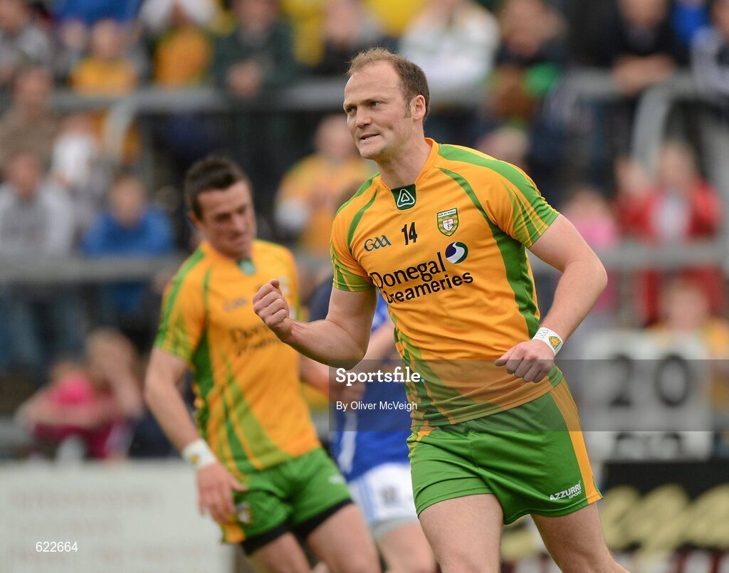 20 May 2012; Colm McFadden, Donegal, celebrates after scoring his side's first goal. Ulster GAA Football Senior Championship Preliminary Round, Cavan v Donegal, Kingspan Breffni Park, Cavan. Picture credit: Oliver McVeigh / SPORTSFILE