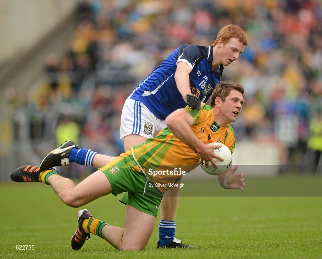 20 May 2012; Ryan Bradley, Donegal, in action against Jason McLoughlin, Cavan. Ulster GAA Football Senior Championship Preliminary Round, Cavan v Donegal, Kingspan Breffni Park, Cavan. Picture credit: Oliver McVeigh / SPORTSFILE