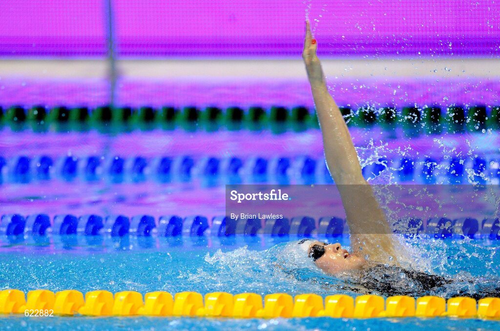 21 May 2012; Ireland's Melanie Nocher, from Hollywood, Co. Down, in action during Heat 3 of the Women's 200m Backstroke. Nocher finished her heat in a time of 2:13.09, a time which sees her finish as 8th fastest qualifier for the Semi-Finals of this event. 31st LEN European Swimming Championships 2012, Morning Session, Debrecen Sportcentrum, Debrecen, Hungary. Picture credit: Brian Lawless / SPORTSFILE