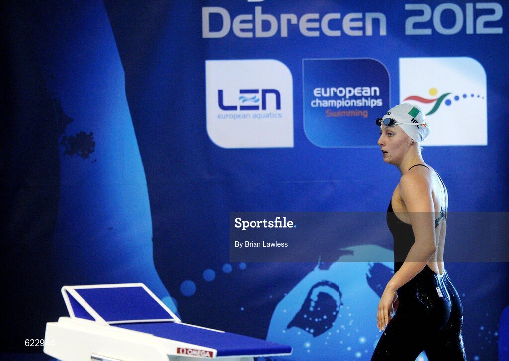 21 May 2012; Ireland's Bethany Carson, from Lisburn, Co. Antrim, leaves the pool after Heat 2 of the Women's 50m Butterfly. Carson finished her heat in a time of 28.43. 31st LEN European Swimming Championships 2012, Morning Session, Debrecen Sportcentrum, Debrecen, Hungary. Picture credit: Brian Lawless / SPORTSFILE