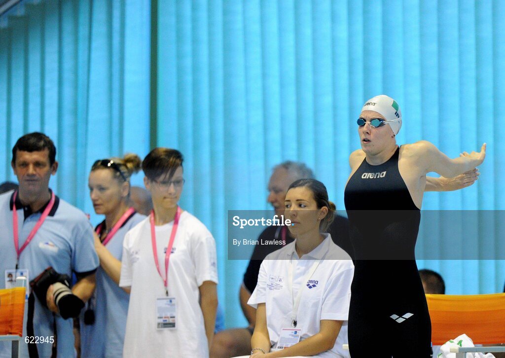21 May 2012; Ireland's Bethany Carson, from Lisburn, Co. Antrim, preapres for Heat 2 of the Women's 50m Butterfly. Carson finished her heat in a time of 28.43. 31st LEN European Swimming Championships 2012, Morning Session, Debrecen Sportcentrum, Debrecen, Hungary. Picture credit: Brian Lawless / SPORTSFILE