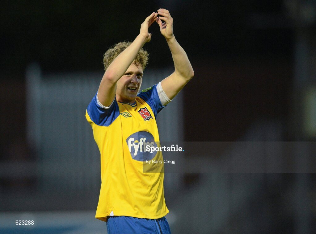 21 May 2012; Mark Grifin, Dundalk FC, celebrates after the game. Airtricity League Premier Division, St Patrick's Athletic v Dundalk FC, Richmond Park, Dublin. Picture credit: Barry Cregg / SPORTSFILE