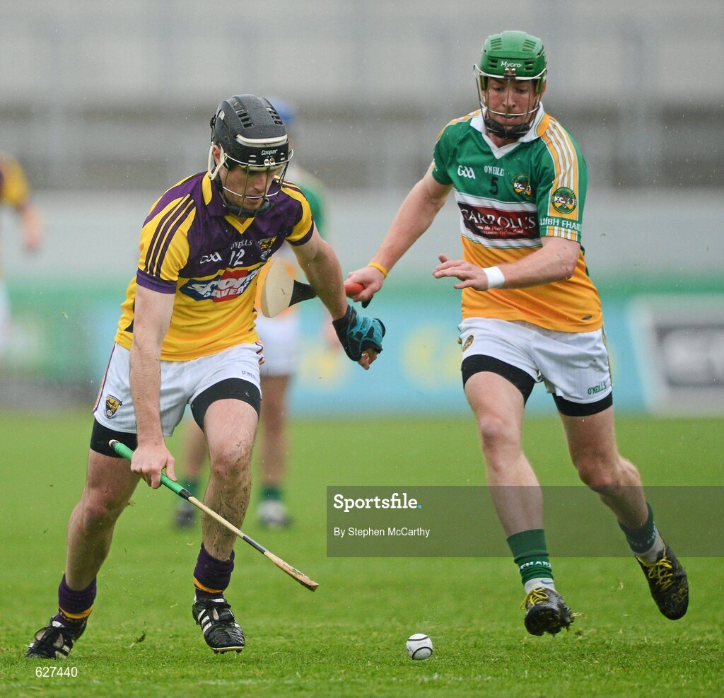 2 June 2012; PJ Nolan, Wexford, in action against Diarmuid Horan, Offaly. Leinster GAA Hurling Senior Championship Quarter-Final, Offaly v Wexford, O'Connor Park, Tullamore, Co. Offaly. Picture credit: Stephen McCarthy / SPORTSFILE