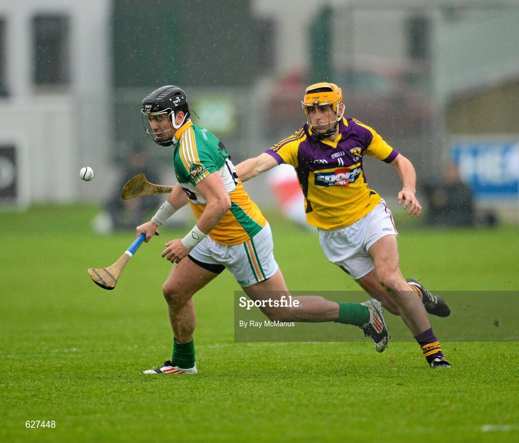 2 June 2012; Shane Dooley, Offaly, in action against Eoin Quigley, Wexford. Leinster GAA Hurling Senior Championship Quarter-Final, Offaly v Wexford, O'Connor Park, Tullamore, Co. Offaly. Picture credit: Ray McManus / SPORTSFILE