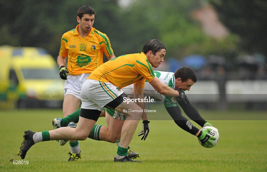 3 June 2012; Sean Kelly, London, in action against Darren Sweeney, Leitrim. Connacht GAA Football Senior Championship Quarter-Final, London v Leitrim, Emerald Park, Ruislip, London. Picture credit: Diarmuid Greene / SPORTSFILE