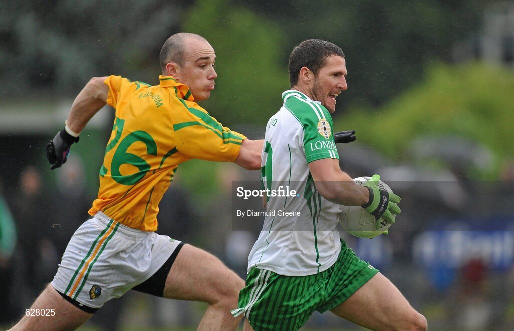 3 June 2012; John Scanlon, London, in action against Robbie Lowe, Leitrim. Connacht GAA Football Senior Championship Quarter-Final, London v Leitrim, Emerald Park, Ruislip, London. Picture credit: Diarmuid Greene / SPORTSFILE