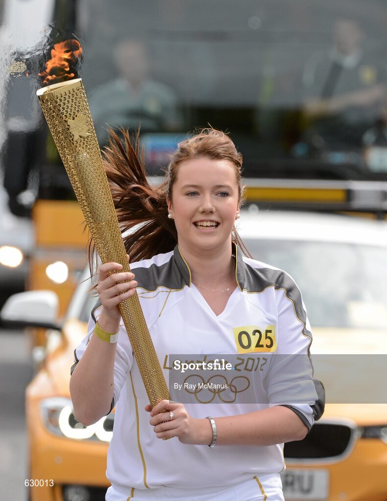 6 June 2012; Alva Nolan, from South Dublin, has been a Special Olympics volunteer since 2007 and referees and coaches athletes in the Blackrock Flyers Special Olympics club. She is now a qualified match official and dedicates her spare time to officiating at Special Olympic competitions regionally as well as organising fundraising events for Special Olympics Ireland, with the Olympic Flame during the London 2012 Olympic Torch Relay through the streets of Dublin. Canal Road, Dublin. Picture credit: Ray McManus / SPORTSFILE