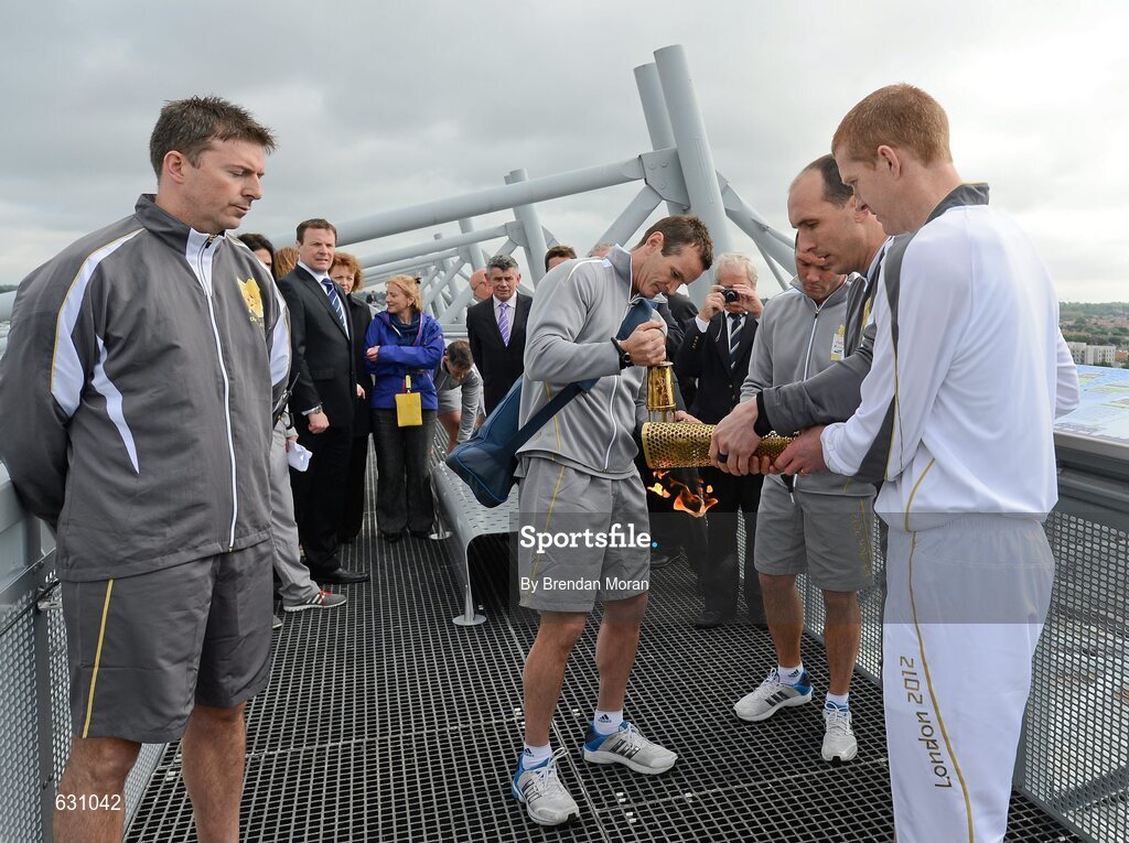 6 June 2012; The Olympic Flame is lit for the torchbearer Henry Shefflin, Kilkenny hurler and 10 time All-Star, on the Etihad Skyline at Croke Park to start the London 2012 Olympic Torch Relay through the streets of Dublin. Croke Park, Dublin. Picture credit: Brendan Moran / SPORTSFILE