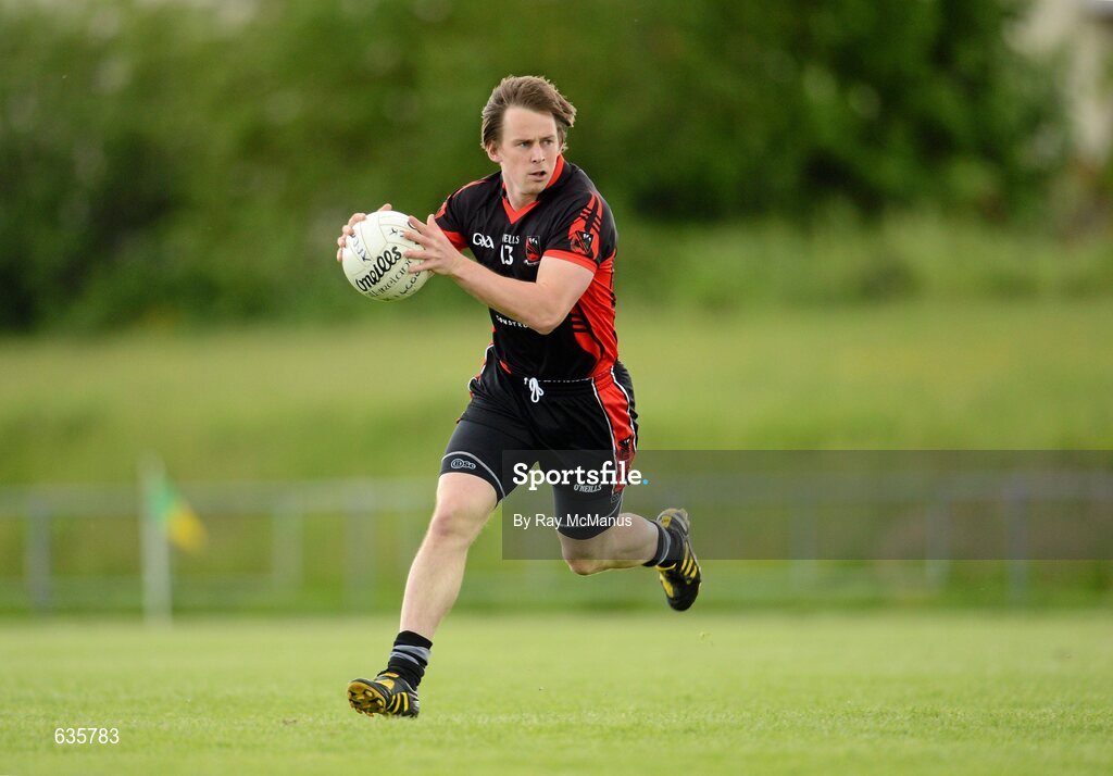 10 June 2012; Seanie Johnston, St. Kevin's GAA Club, Staplestown, North Kildare, who scored five points in a 1 - 11 to 1 - 8 victory, prepares to kick his first point. Kildare Senior Football League, Division 2, Kilcock GAA Club v St Kevin's GAA Club, Kilcock GAA Club, Baltracey, Kilcock, Co. Kildare. Picture credit: Ray McManus / SPORTSFILE